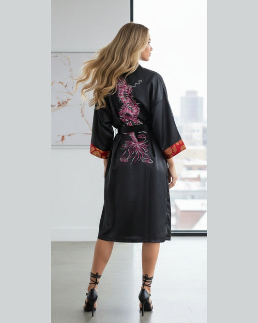 YIN YANG KIMONO | Reversible Kimono with Dragon & Floral Print