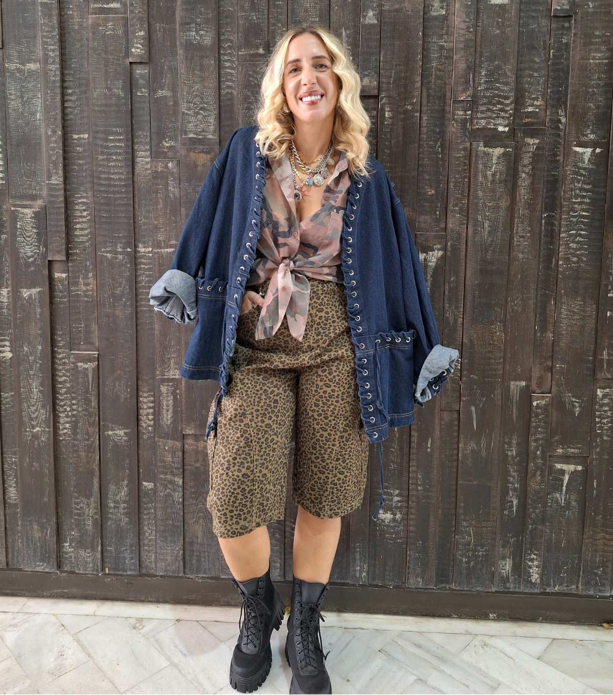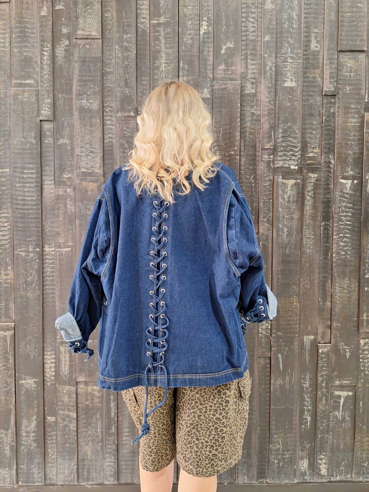 Oversize Τζιν τζάκετ με κορδονάκια που προσθέτουν μοντέρνα και ιδιαίτερη λεπτομέρεια, ιδανικό για στιλάτες casual εμφανίσεις.