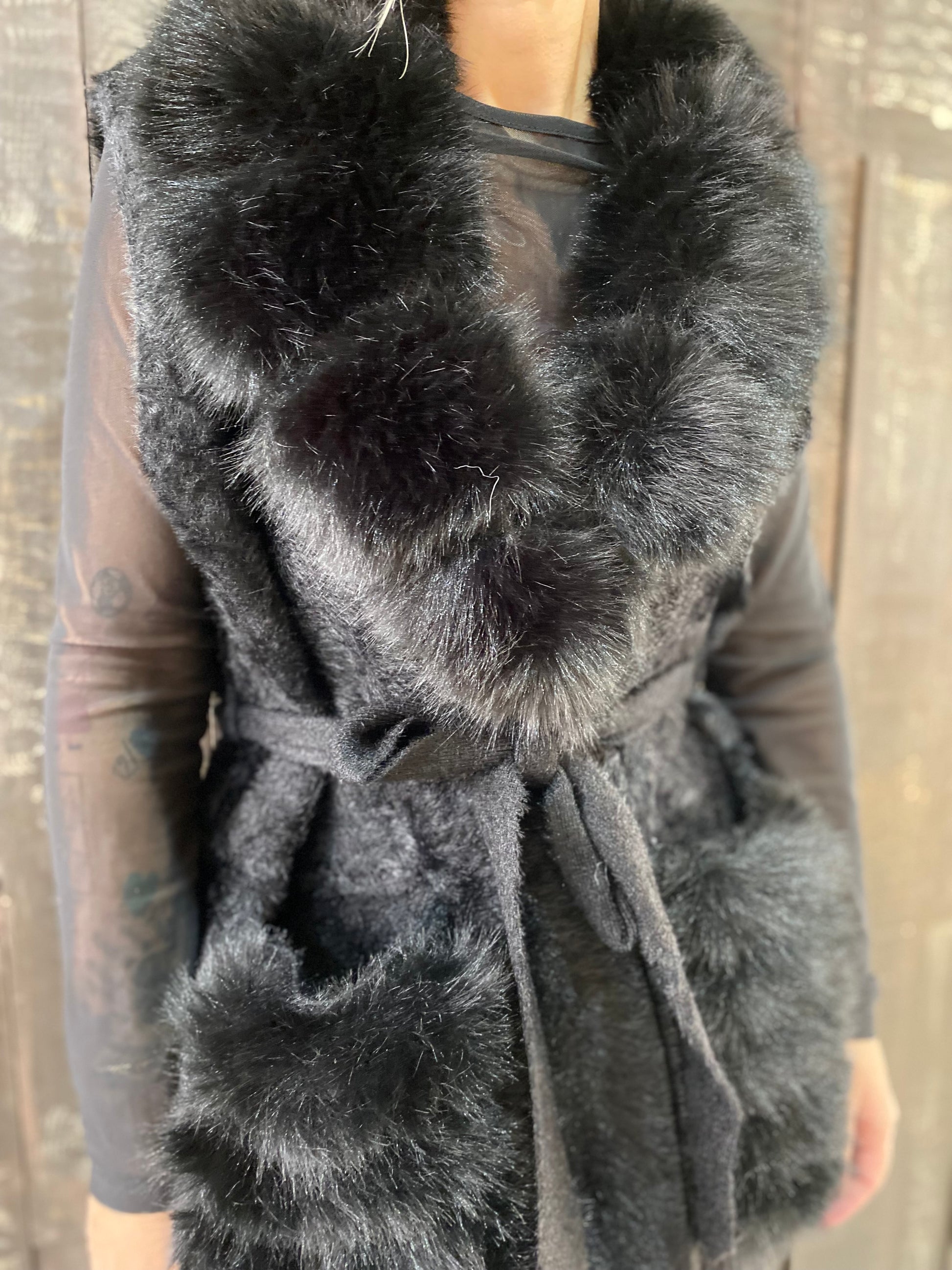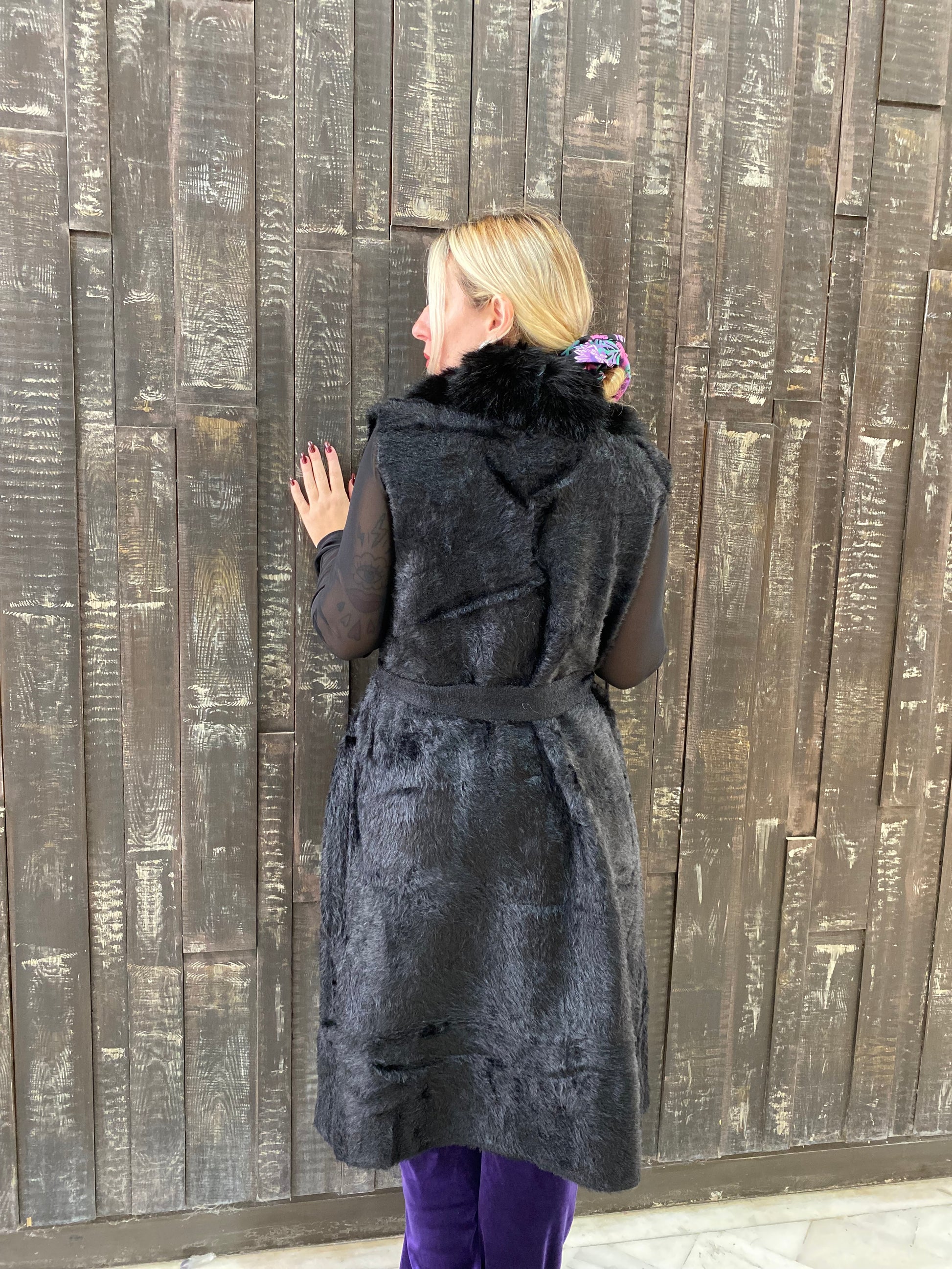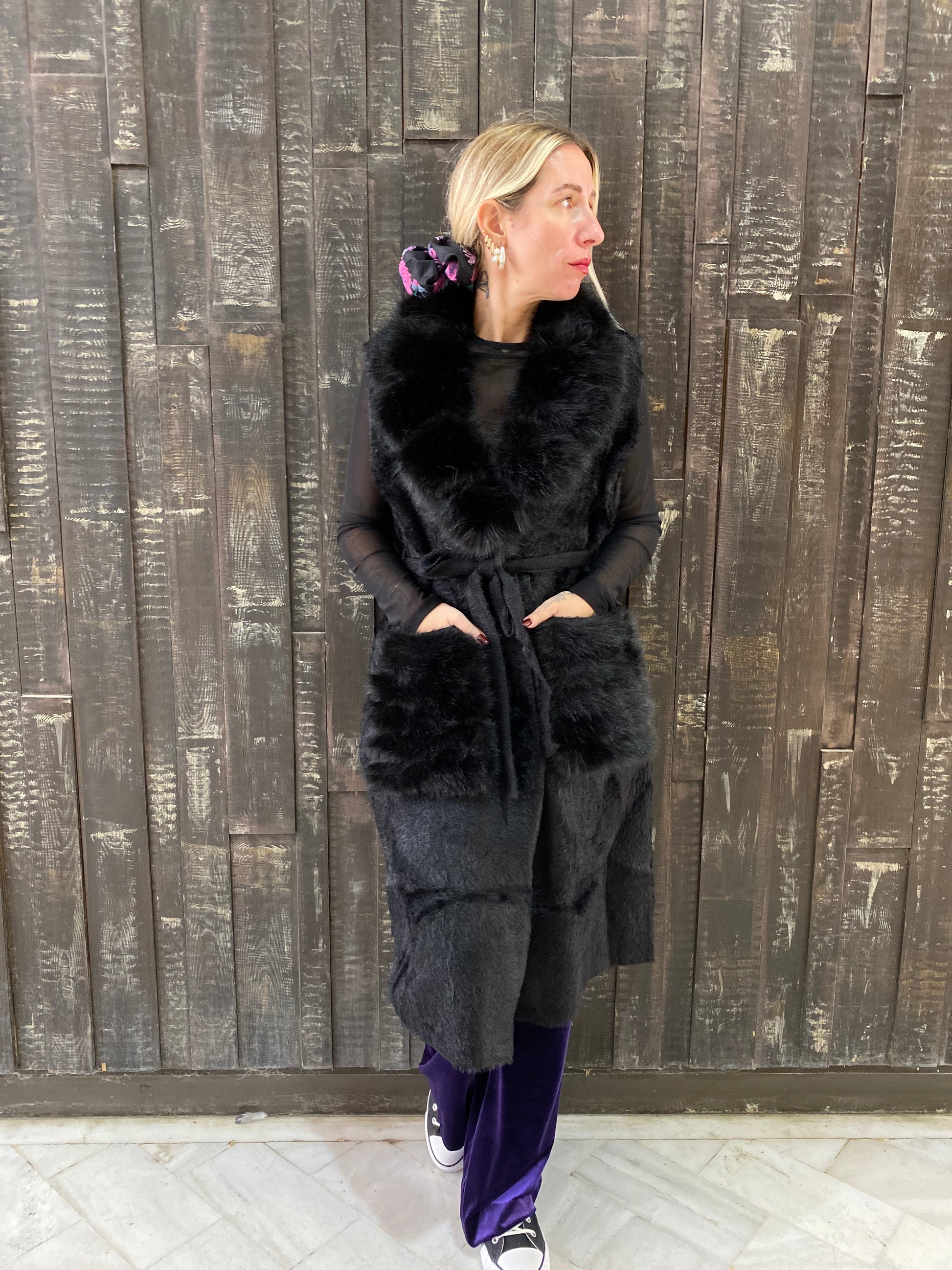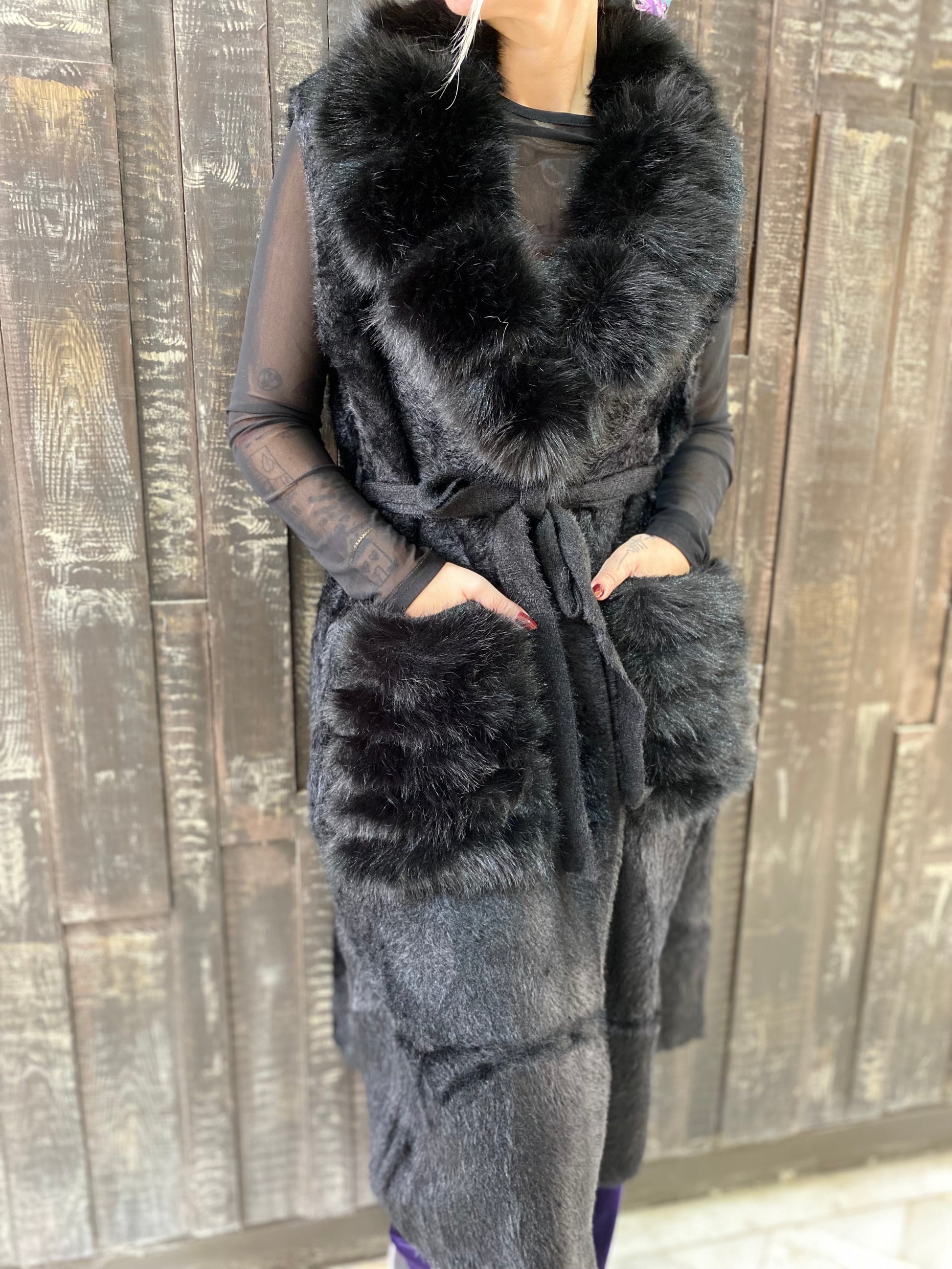 Μακριά μαύρη αμάνικη γούνα πολυτελής και ζεστή, προσθέτει στυλ και κομψότητα σε κάθε outfit. Ιδανική για χειμερινές εμφανίσεις με glamour και άνεση.